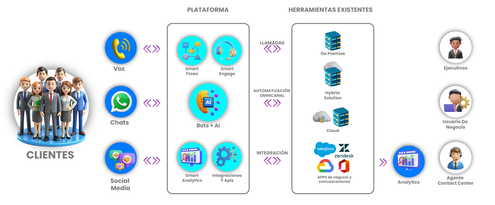Se integra de forma fluida con el software y la infraestructura que las empresas ya utilizan, permitiendo automatizar incluso los procesos más complejos con rapidez y sin fricciones. Gracias a su enfoque independiente de proveedores, aprovecha lo último en inteligencia artificial con capacidades avanzadas de análisis, ayudando a las organizaciones a anticipar y resolver problemas antes de que afecten al cliente. Además, mantiene el contexto de cada interacción a lo largo de múltiples canales, asegurando una experiencia continua, personalizada y eficiente en todo el viaje del usuario.